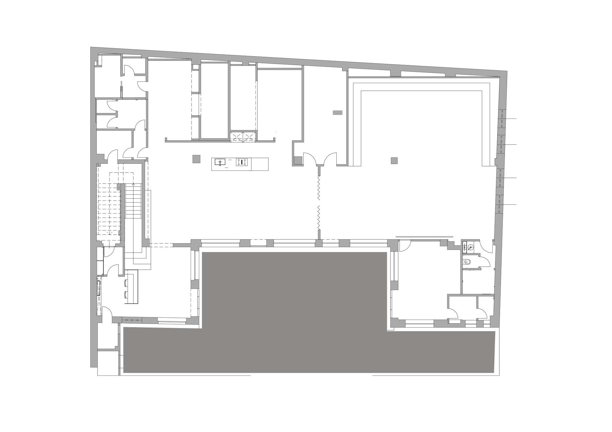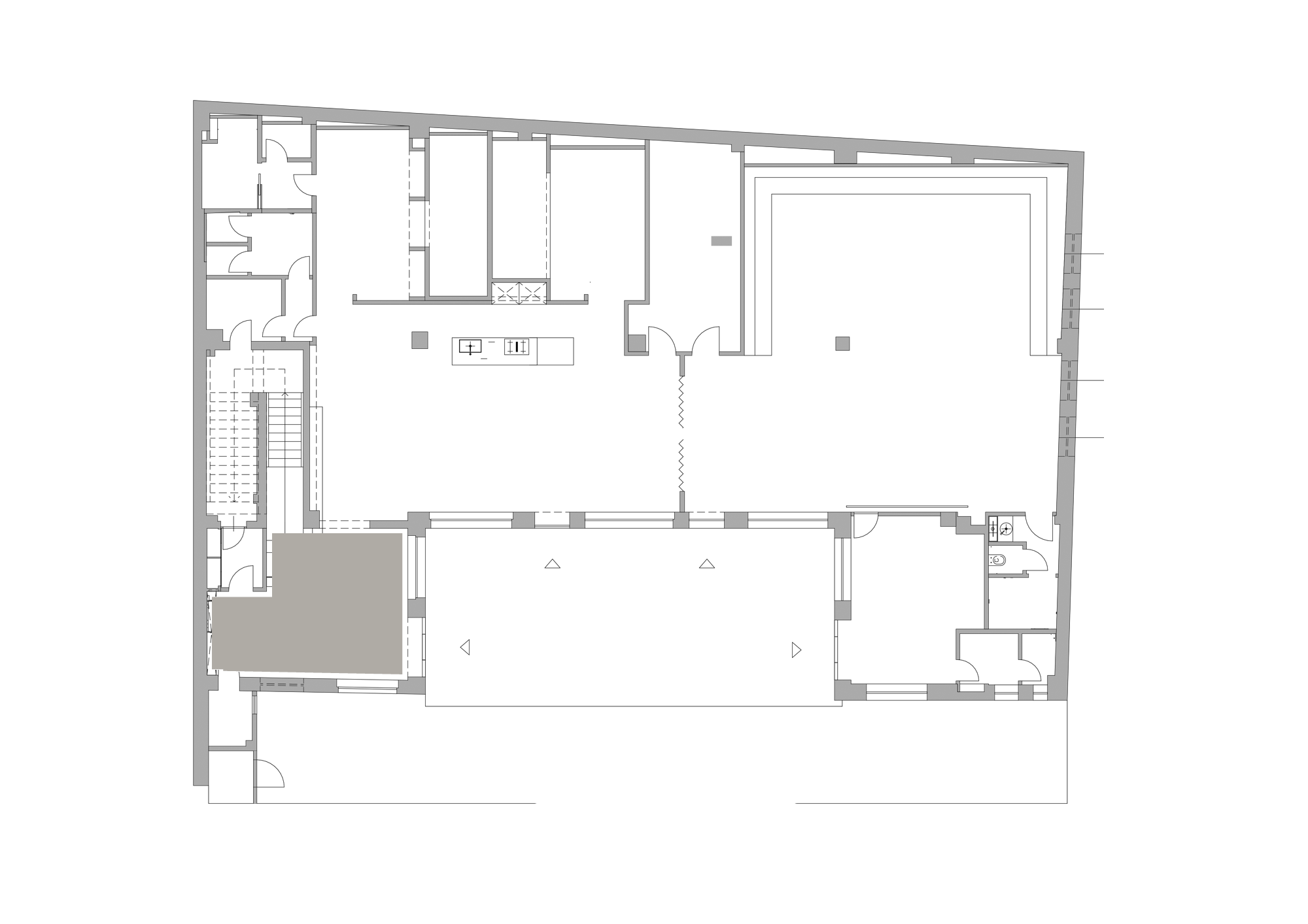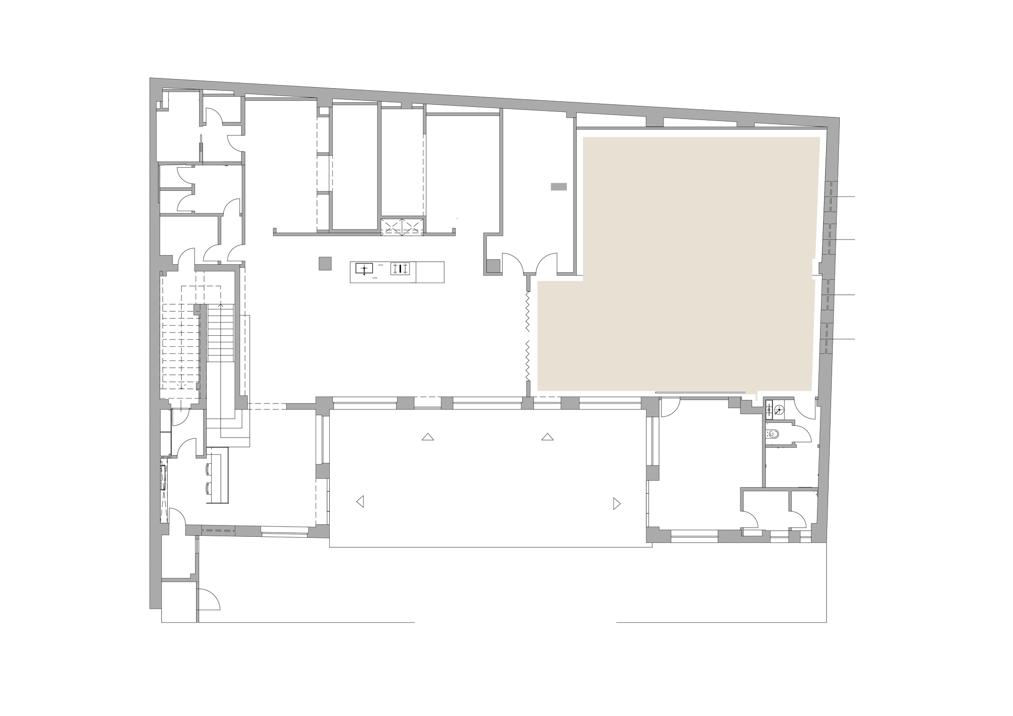 Il piano terra ospita aree ideali per installazioni, presentazioni di prodotto o momenti di incontro.